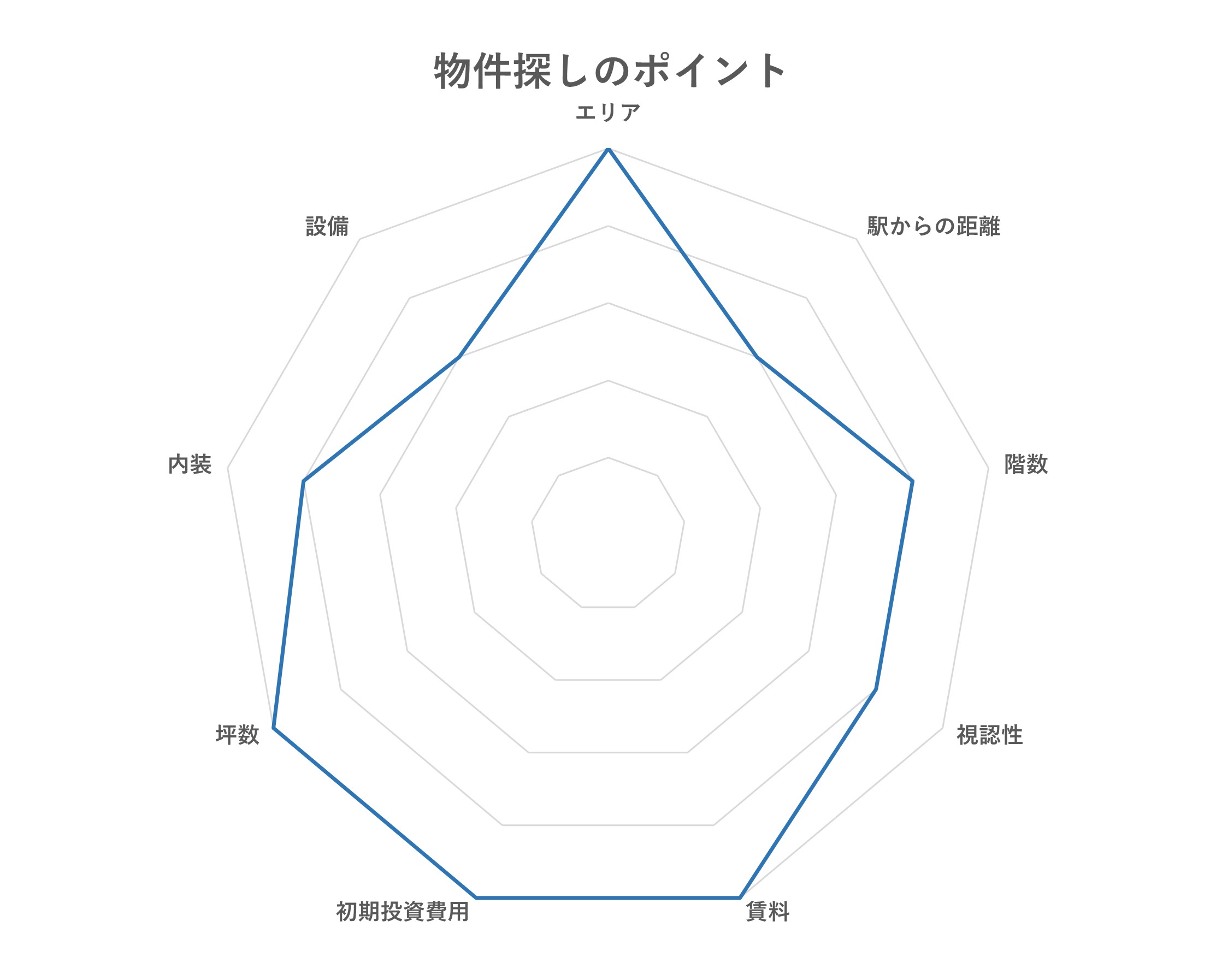 そんなご契約者様が物件を選ぶ上で一番に重視していたのは、出店エリア。もともと営業していた蒲田駅を第一候補とし、そこから2km圏内のエリアに絞って物件をチェックしていました。