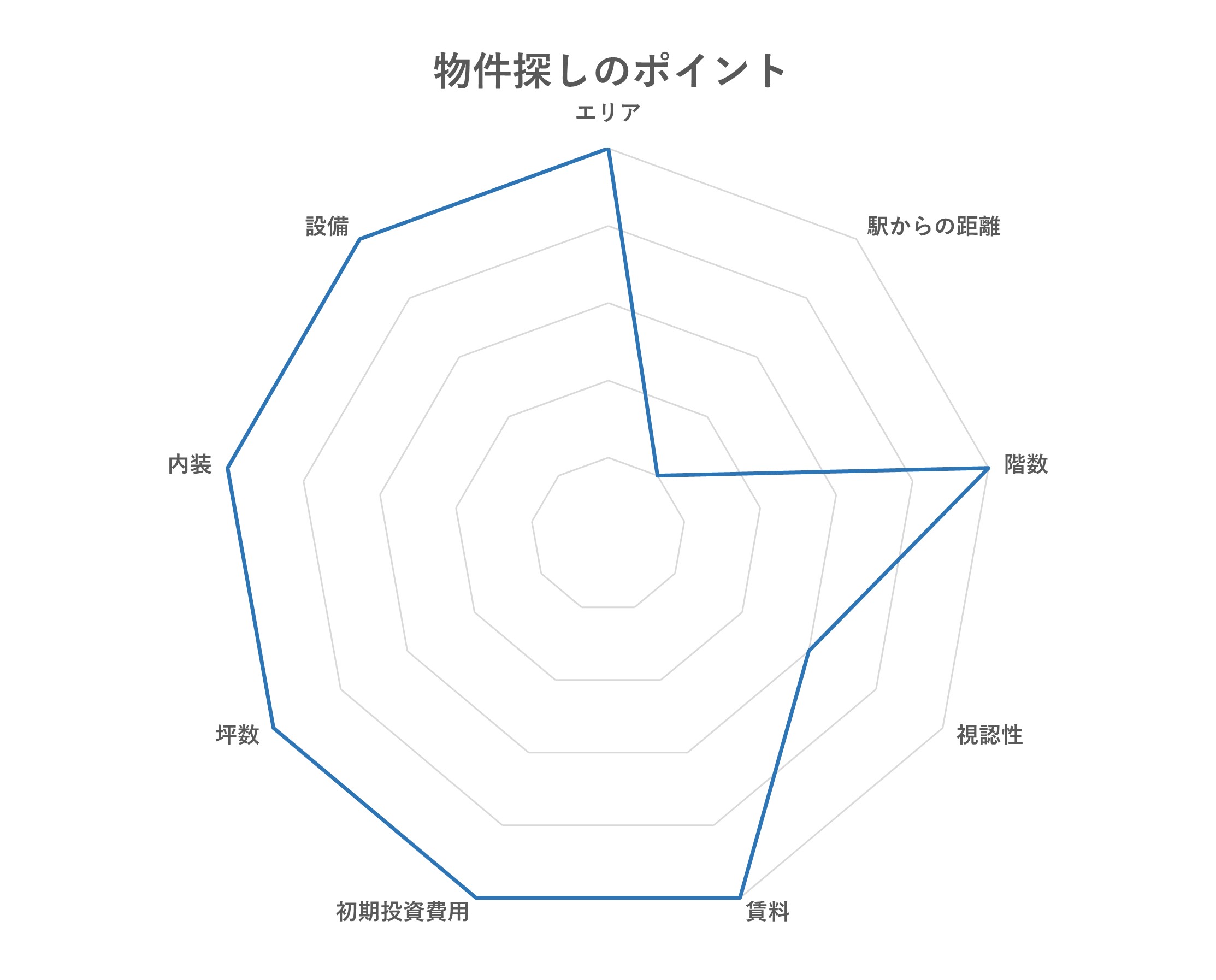 新宿区、丸の内線・総武中央線沿線を中心に、市ヶ谷にある店舗ともバッティングしないよう近すぎず遠すぎな距離感で物件をチェック。一方の立地については、繁華街であることにこだわりないものの、駅の乗降客数と人通りは特に注視して現地視察を行っていました。