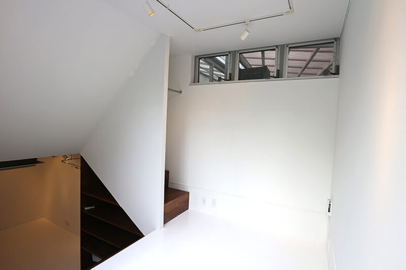 外からはガラスで丸見えでも、一見使いにくい階段をうまく利用することでお客様が入店しやすく、かつプライベート感のある空間を作り上げた。エリア全体のおしゃれなイメージへの期待にも応えつつ、スポーツブラというデリケートな女性の下着を扱う店として、店主のやさしい雰囲気が作り上げたオンリーワンの店といえる。