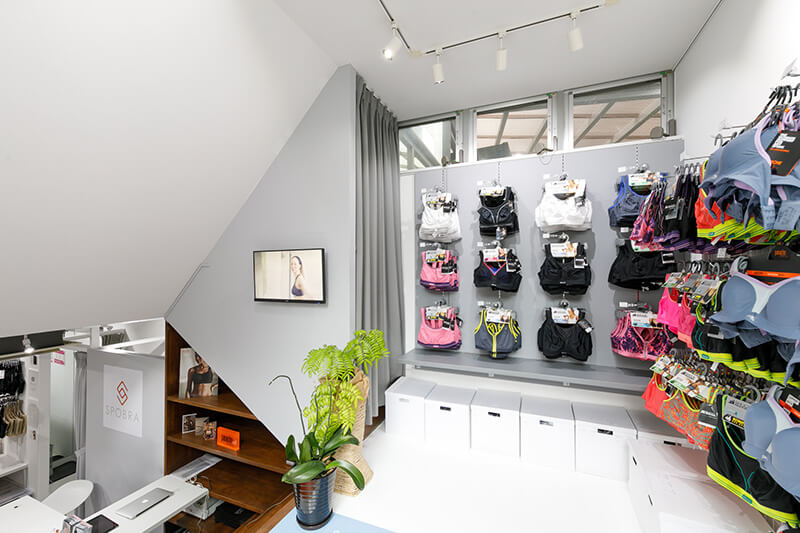 明治神宮前駅から徒歩4分、原宿駅から徒歩8分、表参道駅から徒歩9分の路地裏にある「SPOBRA 原宿店」。2017年1月にオープンした日本で唯一のスポーツブラ専門の路面店。