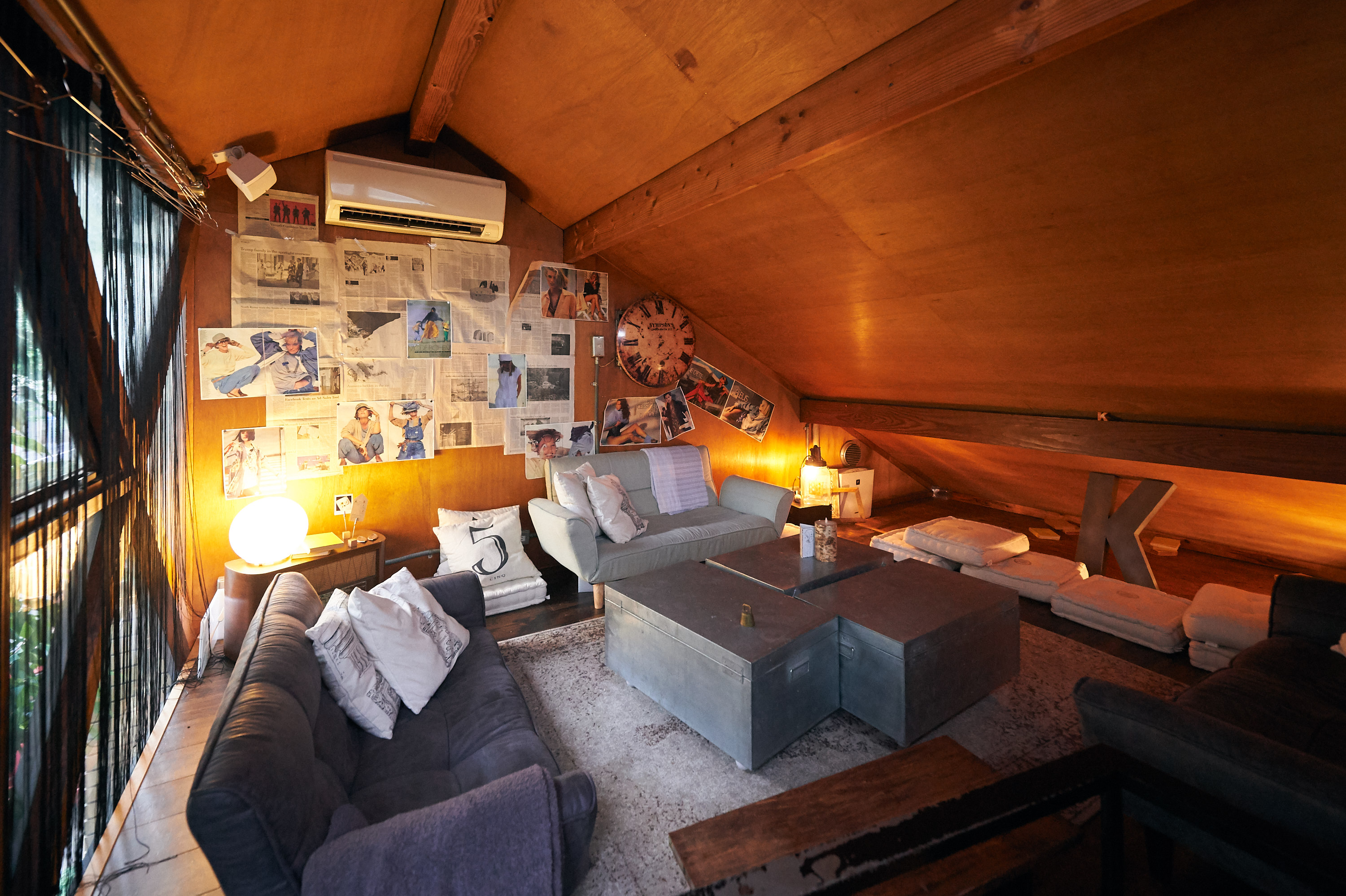 物置として使われていた部屋をリフォームして客席として使用。畳だった床は業者に頼んでフローリングに替え、壁には山中さん自ら新聞紙などを貼って装飾。ソファを置いてくつろぎの空間を創出している。