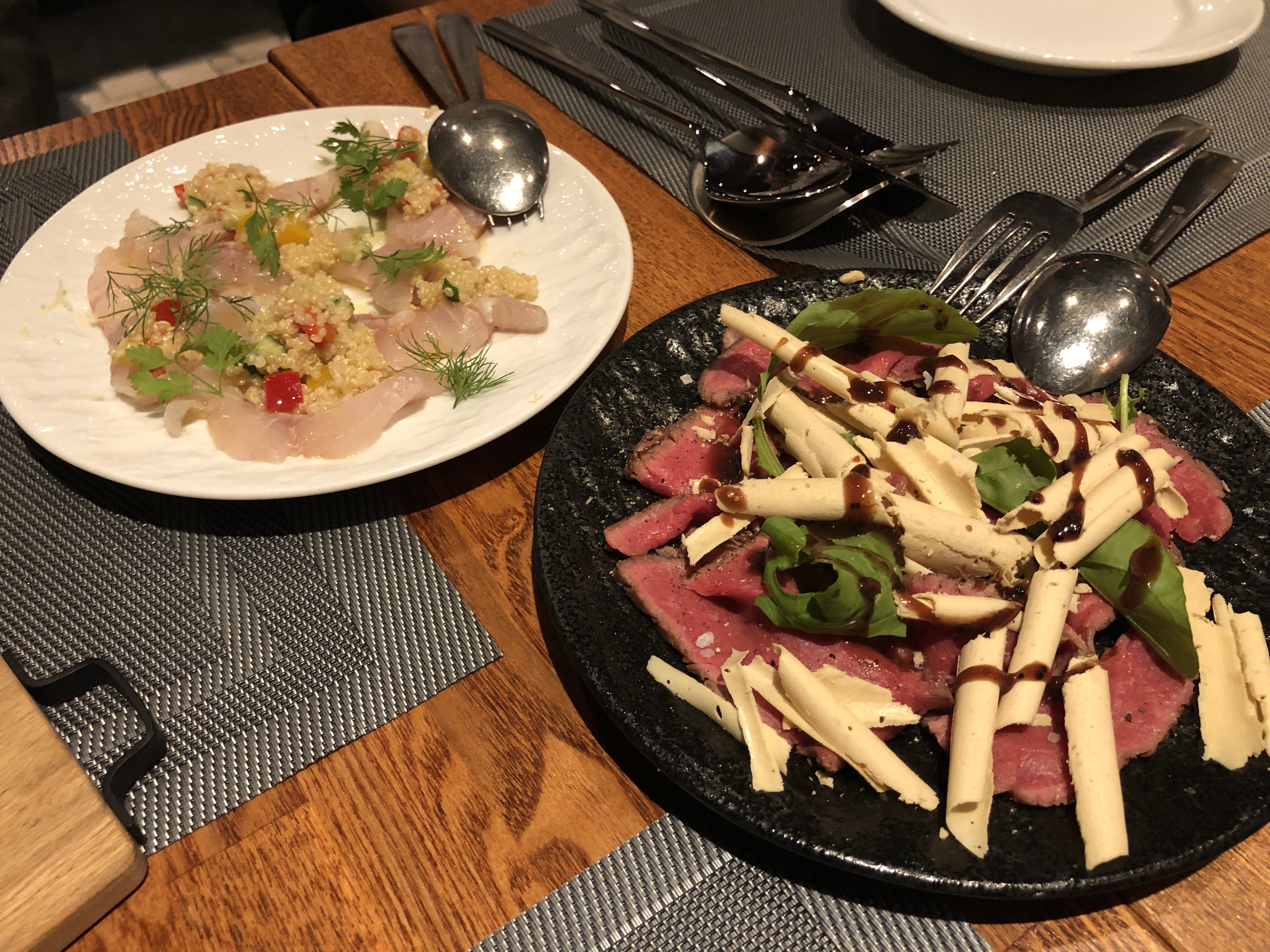 「鮮魚のカルパッチョ」と「和牛ローストビーフ トリュフソース」