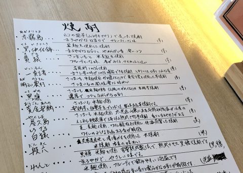 お酒は焼酎をメインに豊富に取り揃えており、ビギナーさんでもわかりやすいようにどんな味わいなのか説明書きがされています。お酒に詳しくない方でもついつい気になってオーダーしていしまいますね。