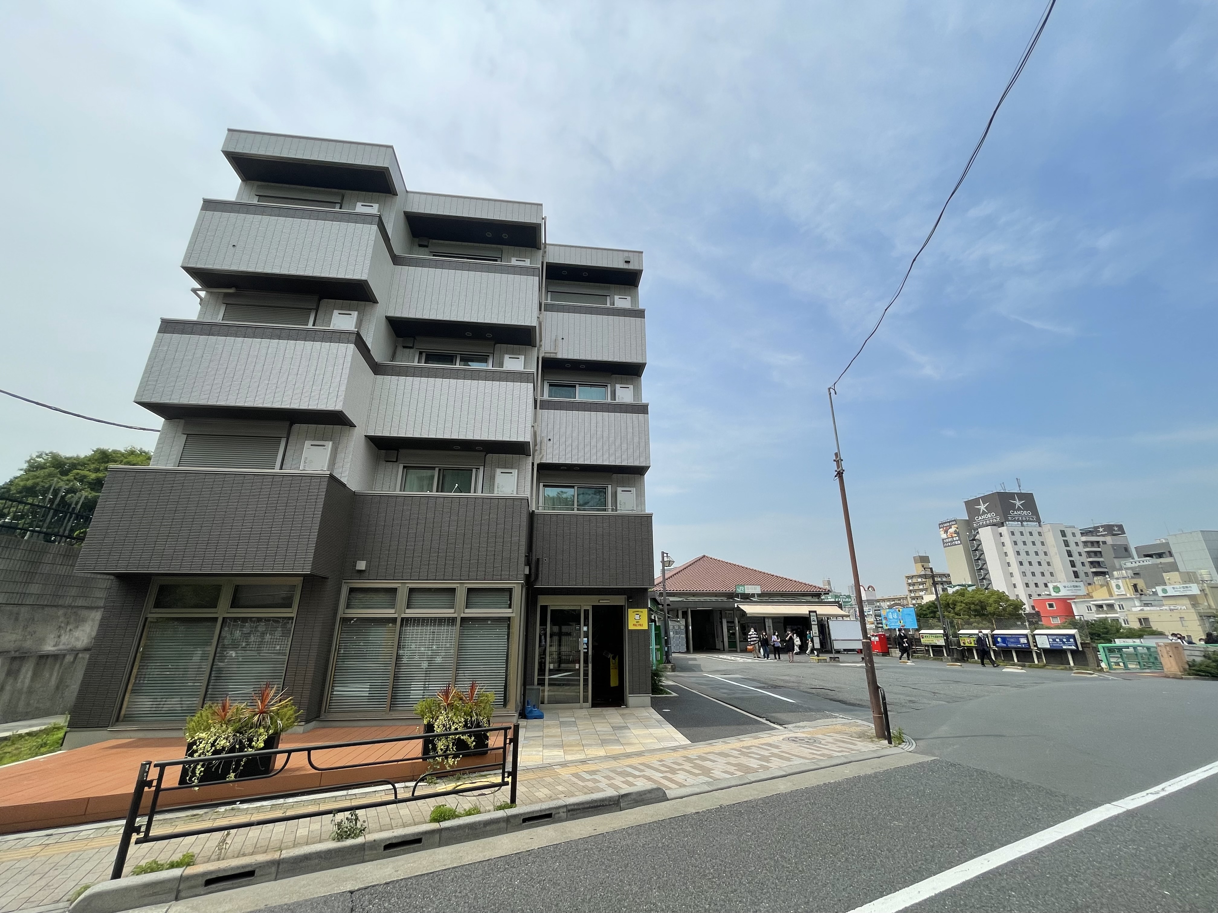 当該物件は、南口改札を出てすぐ目の前に位置しています。南口は歴史のある観光スポットや大型イベントホールがあるため、週末は県外から訪れる人も少なくありません。