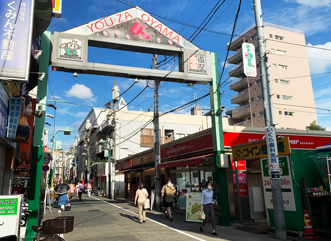 線路を挟み「ハッピーロード商店街」の反対側にある「遊座大山商店街」は、大山駅から山手通りまで一直線につながる商店街。
