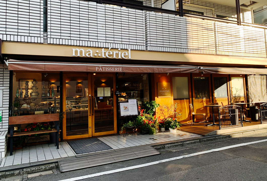 当物件より1本道を挟んだ住宅地の一画にあるパティスリーカフェ「マテリエル(ma∴tēriel)」。