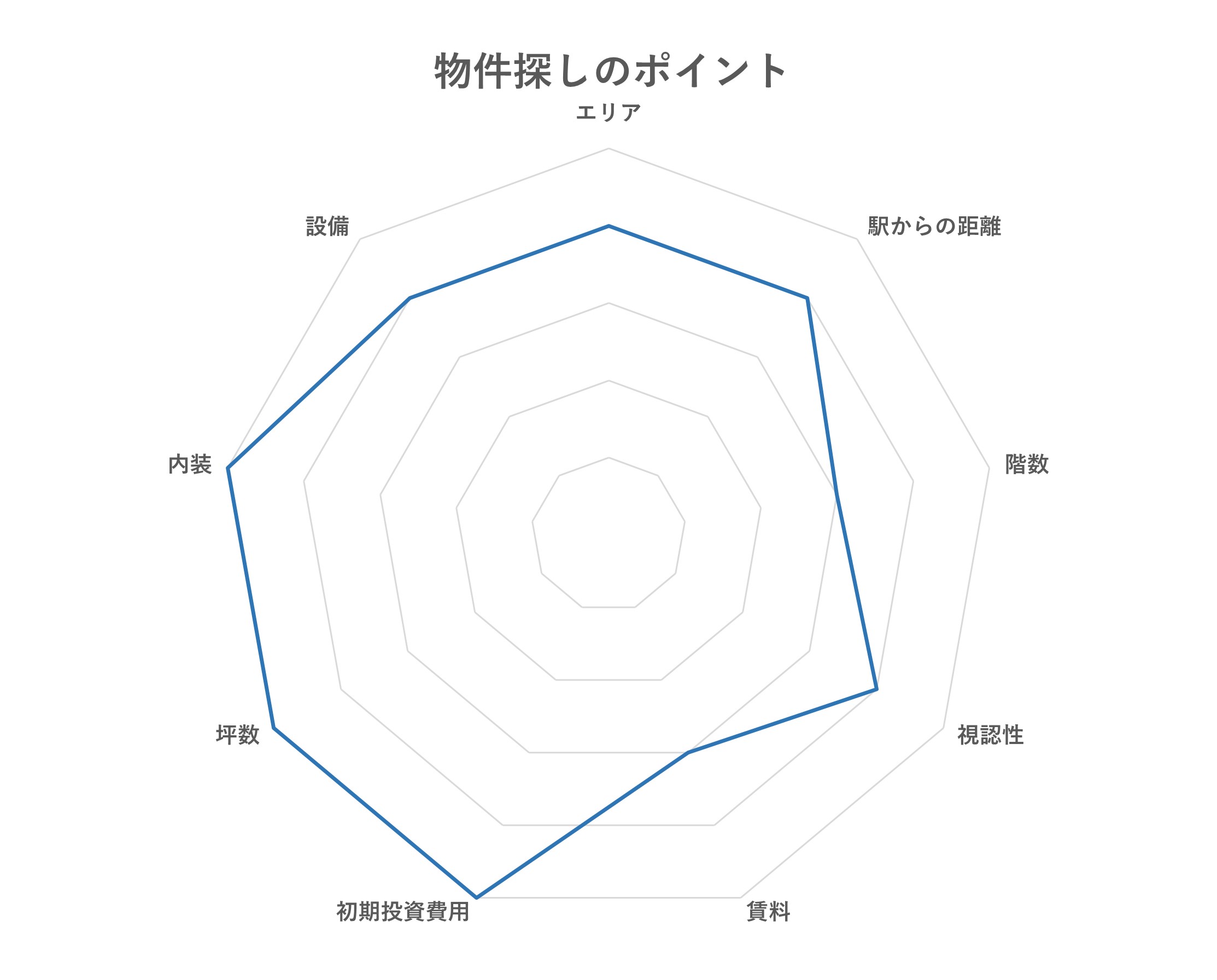 物件探しで最も重視していたのは、費用面。中でも初期投資をできるだけ抑えたいと、活用度の高い居抜き物件がご希望でした。