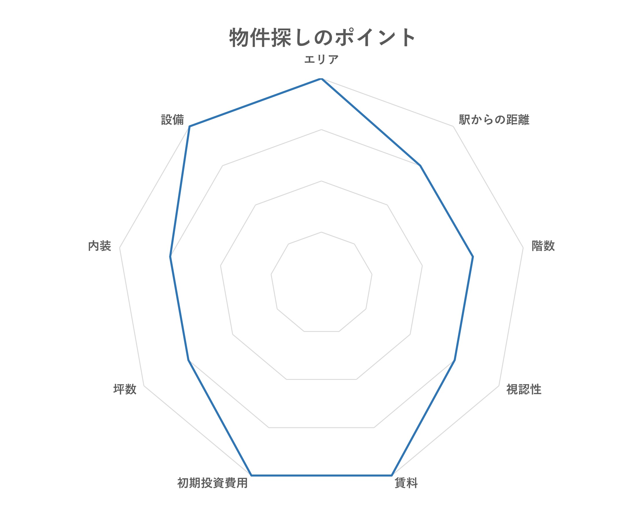 エリアと設備を重視しつつ、費用面とのバランスがよい物件を希望