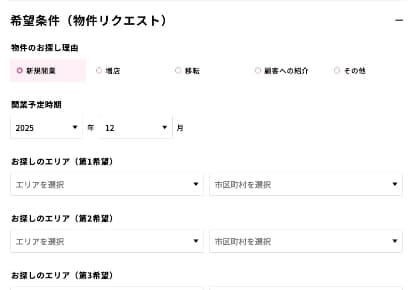 会員登録フォームで希望条件の入力欄から、条件をご入力ください