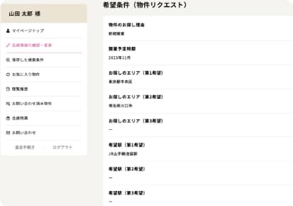 会員登録がまだの方は、会員登録フォームでお探しの物件の「希望条件」(※1)をご登録ください。会員の方は、マイページで「希望条件」(※2)を入力・更新してください。